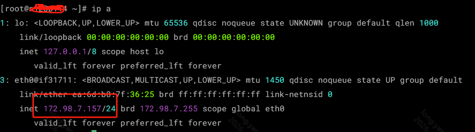 上面命令执行完成后,我们会进入容器中,查看ip可以看到确实是pod容器内部: